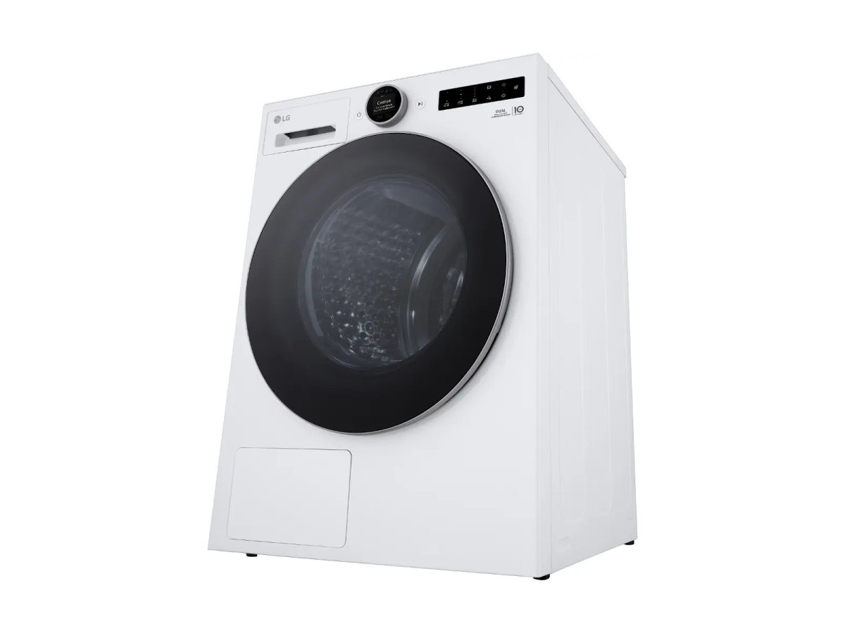 Testované spoločnosťou Intertek v auguste 2024, program Bavlna u sušičky LG s tepelným čerpadlom v porovnaní s programom Iba sušiť u konvenčnej práčky so sušičkou LG, na základe 3kg náplne IEC s počiatočnou vlhkosťou 60% (RH90X75V3N vs. F4Y7RR).