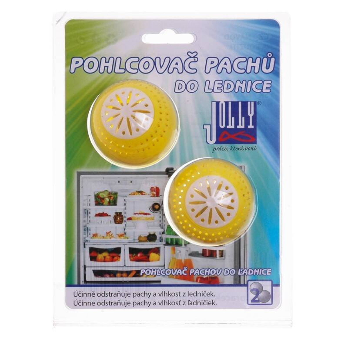 Pohlcovač pachov do chladničky, netoxický, odstráni pachy a vlhkosť. Predlžuje životnosť potravín, kompaktné rozmery. Účinnosť cca 3 mesiace, 2 ks v baleniu.